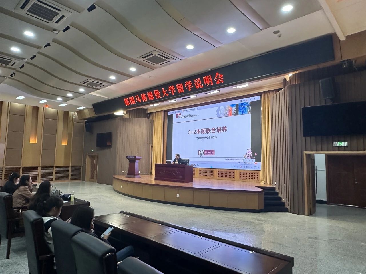 栾慧鑫系统阐述了该国际合作项目的核心优势,着重分析了语言类专业学生通过此项目实现学术进阶与职业发展的双赢路径。全面介绍了马格德堡大学的办学特色、专业设置及项目在本校的运作模式,并就申请流程、费用构成及在德学习生活的注意事项作了详细说明。