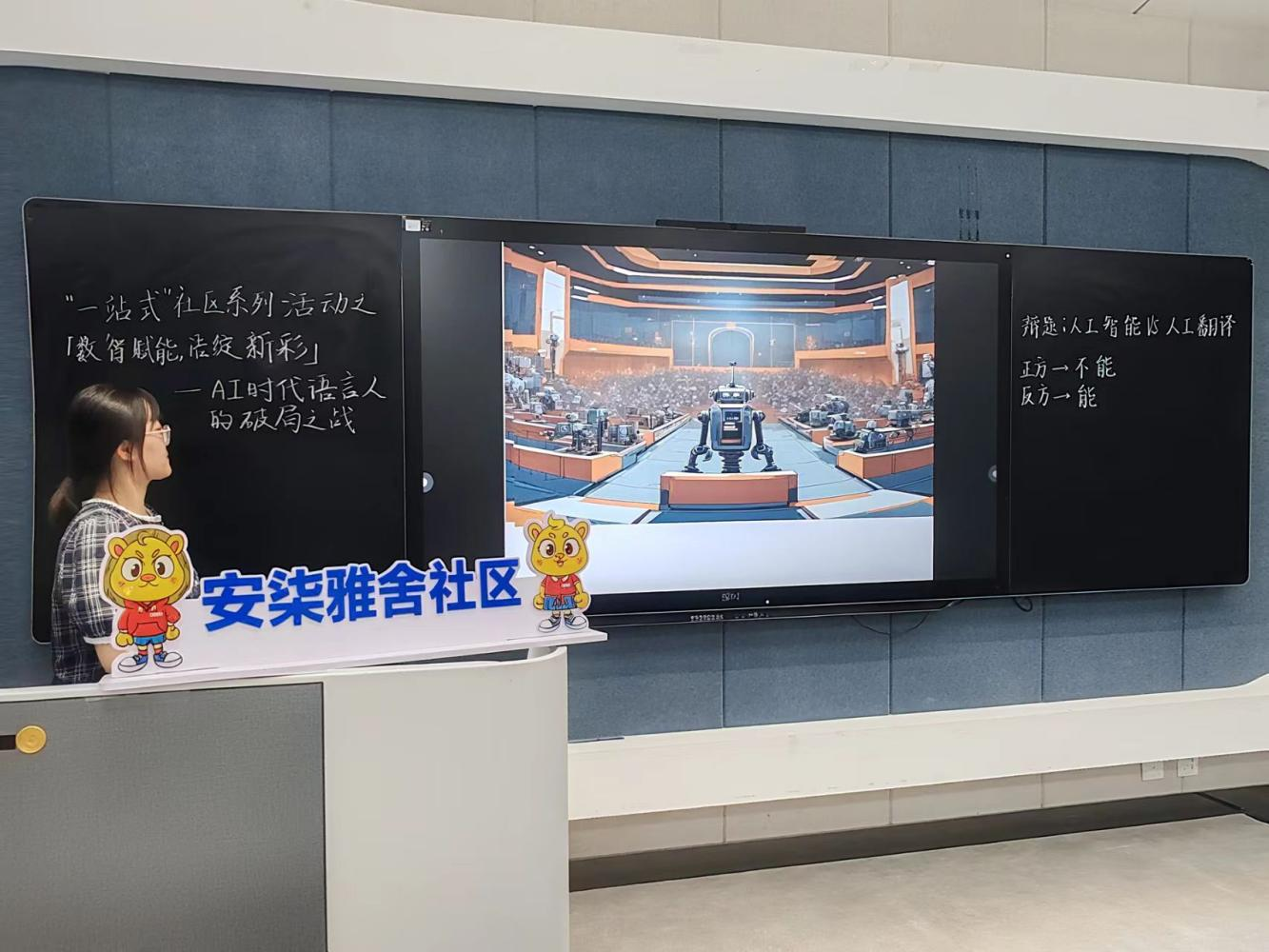 为探讨AI时代语言专业发展新趋势,激发师生对行业变革的思考,6月4日,学院一站式社区在第十一教学楼902教室举办“AI时代语言人的破局之战”主题活动。本次活动以思辨擂台形式聚焦“AI取代人工”议题,吸引众多2024级学生踊跃参与,共同探索智能时代语言领域的机遇与挑战。