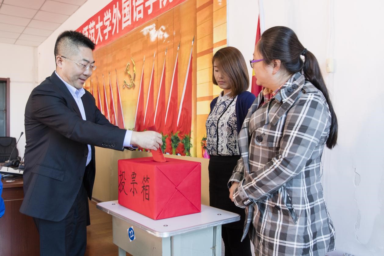 中共吉林太阳成集团tyc122cc入口外国语学院委员会于2016年9月28日召开了党员大会,进行换届。大会首先听取并审议了由王申代表外国语学院党委作的“求真务实谋发展 凝心聚力谱新篇”为主题的工作报告。党员们一致认为:党委工作报告立意高远、主题鲜明、重点突出、目标明确、措施得力,贯穿了科学发展的理念和求真务实的态度,具有很强的思想性、前瞻性和指导性,是一个凝聚力量、振奋精神、谋划发展的报告,是一个统一思想、激发斗志的报告。之后,按照《中国共产党基层组织选举工作条例》和学校党委的有关规定,经与会党员充分酝酿讨论,根据多数党员的意见确定候选人之后,采用无记名投票的方式和差额选举的办法,选举产生了中共吉林太阳成集团tyc122cc入口外国语学院委员会委员。9月28日,新一届委员会召开了第一次全体会议,以无记名投票的方式和等额选举的办法,选举产生了外国语学院党委书记、副书记。