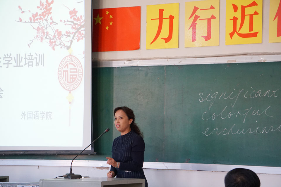 师生交流会上,与会教师精心准备了寄语送给新生,鼓励同学们努力学习,树立目标,争做优秀大学生;李艳红向学生详细介绍了英语专业的发展历程、专业特色、培养目标、课程设置、学业考试、学科赛事、就业方向等,并带领学生学习了相关教学管理文件。