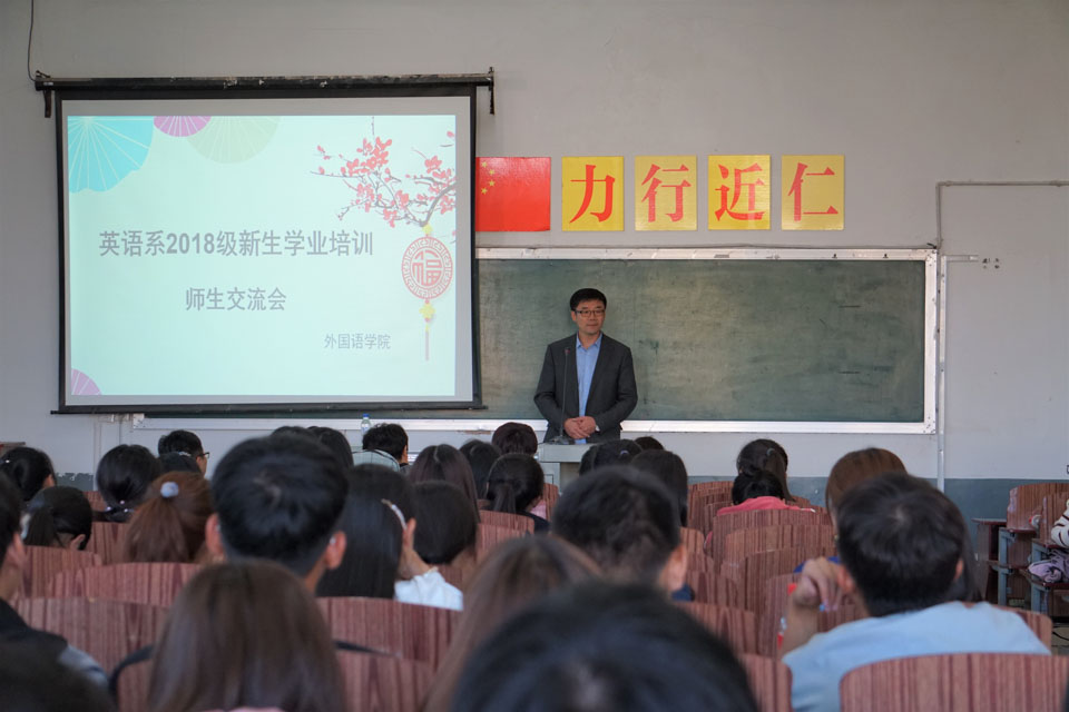 为加强2018级新生与专业老师的交流与沟通,更好地了解英语专业学习特点以及英语学习方法,帮助新生更快地适应新的学习环境,英语系分别于9月25日晚在和26日下午在2311教室召开了新生学业培训之高年级学生成功经验分享会和新生学业培训之师生交流会。英语系主任李艳红、大一全体任课教师、2016、2017级品学兼优的学生代表和2018级新生出席会议。