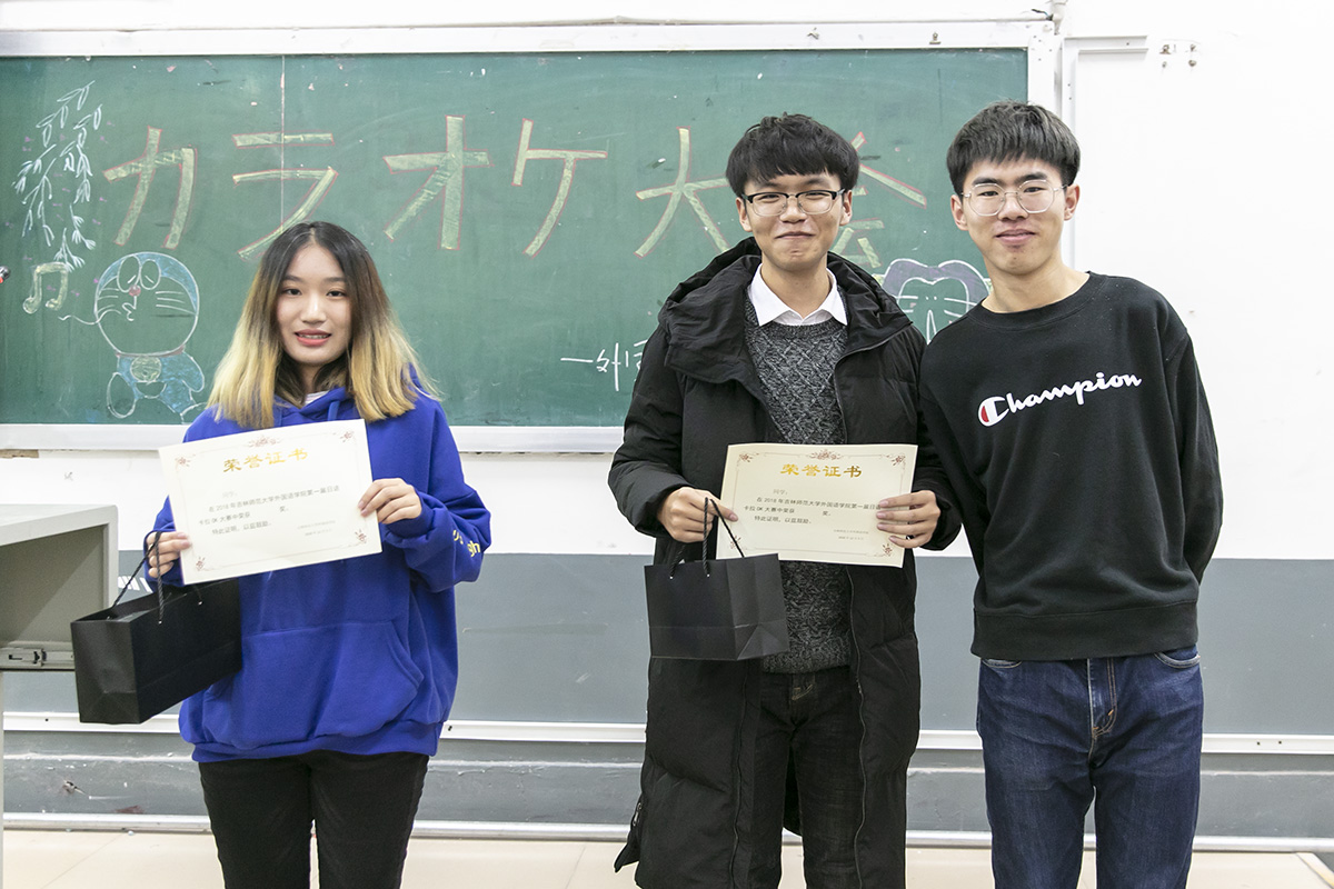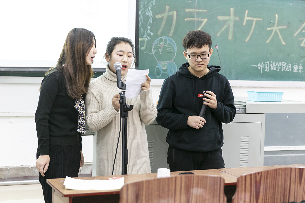 为了增加大家对日语的学习兴趣,外国语学院日语系于2018年12月5日举行了外国语学院第一届日语卡拉OK大赛。日语系刘丽芳老师、李晶老师以及外籍教师北岛怜奈、增田穗等老师出席并担任本次比赛的评委。歌手们一个个神采奕奕,精神饱满,台上歌声嘹亮,余音绕梁。台下掌声此起彼伏。才华横溢的本校著名歌手作为此次活动的嘉宾也现场奏响了华美的乐章,经过一番激烈角逐,最终大赛评出一等2人,二等奖4人,三等奖6人,共计12名同学脱颖而出。本次活动无论歌手还是观众都收获颇丰,相信经过此次活动同学们会从日语学习中找到更多的乐趣。
