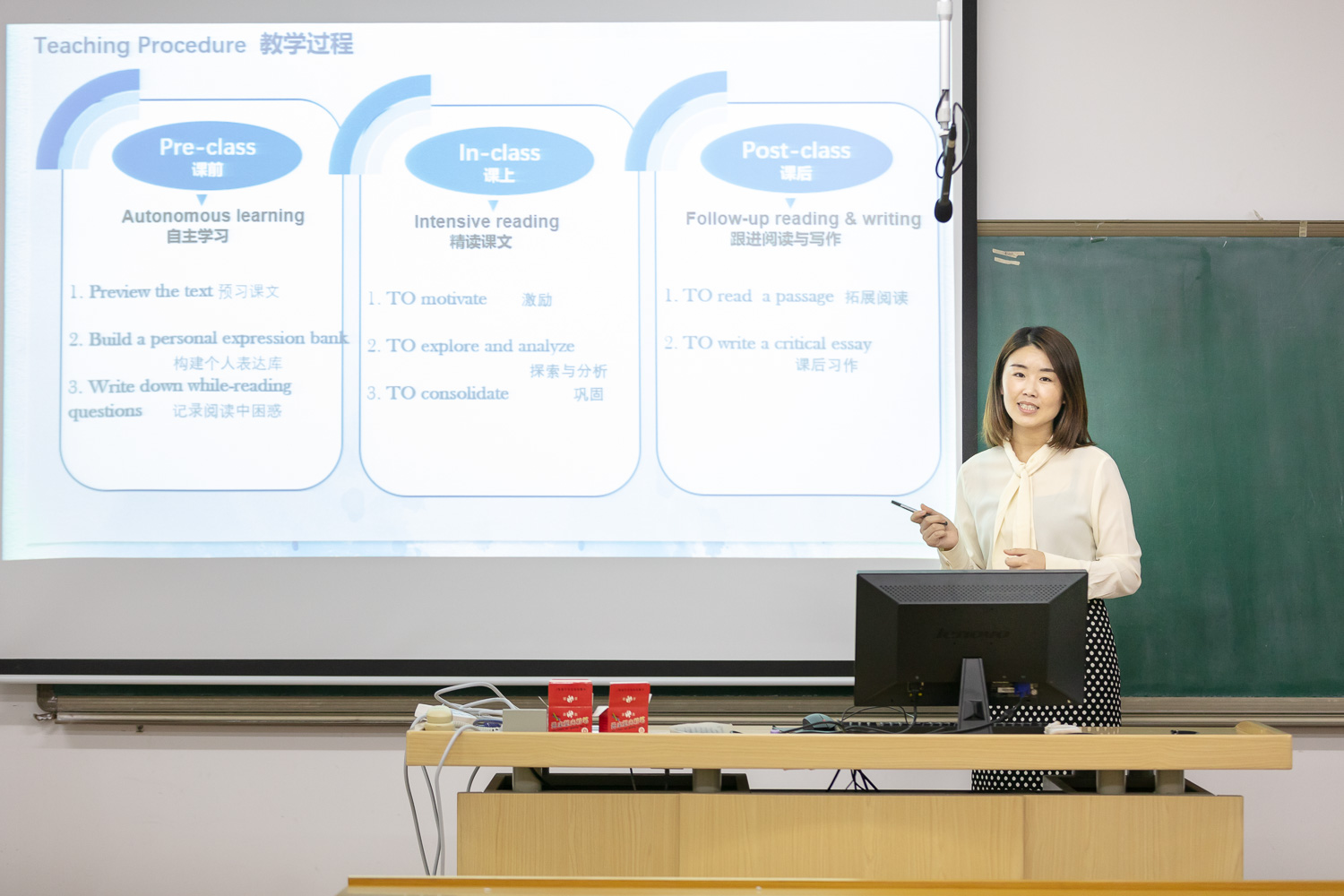 2021年11月17日下午,外国语学院首届课程思政教学竞赛总决赛暨校第二十七届青年教师课堂教学竞赛优胜者选拔赛在第十一教学楼912举行。本次比赛分为初赛和决赛两个阶段,39位青年教师参加初赛,12名教师最终进入决赛。现场决赛共包含说课及回答问题两个环节,我院资深教法教师刘慧教授担任现场提问嘉宾,工会主席纪颖主持,评委由学院党委书记王申、系主任、督学担任,经过激烈的角逐,英语系何丽敏在比赛中脱颖而出,荣获特等奖;朝鲜语系夏艳、大学外语系杜娟荣获一等奖;其他青年教师分别荣获二等奖、三等奖及优秀奖。