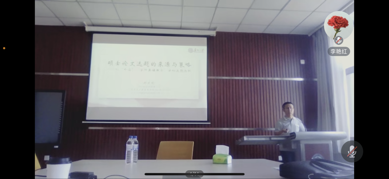 刘宏刚从“硕士论文选题几个冷知识、研究题目从哪里来、外语学习心理研究概况及动向、外语学习心理研究的主要议题、外语学习心理研究的常见选题类型”等方面进行分析讲解,并与现场研究生互动交流,就研究生学习与研究给出中肯建议。本次讲座使得研究生们及青年教师们明确了学习与研究的努力方向,受益匪浅。