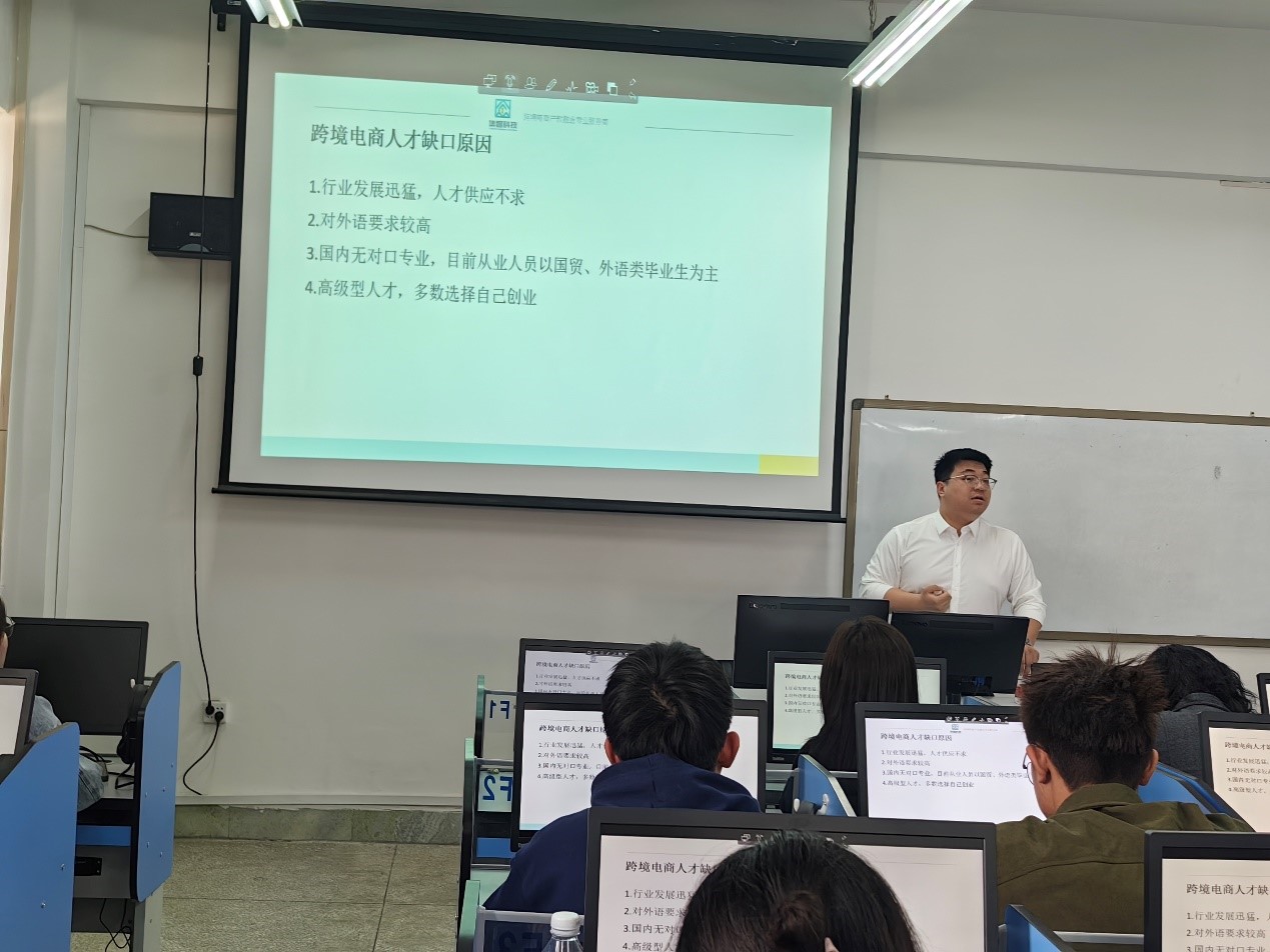 4月12日下午,受俄语系邀请,俄速通集智科技有限公司副总经理都宪宇、公司教学中心主任张浩然一行莅临我院指导工作。都宪宇在主教1601教室为俄语系师生做了题为“跨境电商的发展趋势”专题讲座。俄语系教师出席讲座、俄语系部分学生参加讲座,讲座由董秋荣副教授主持。