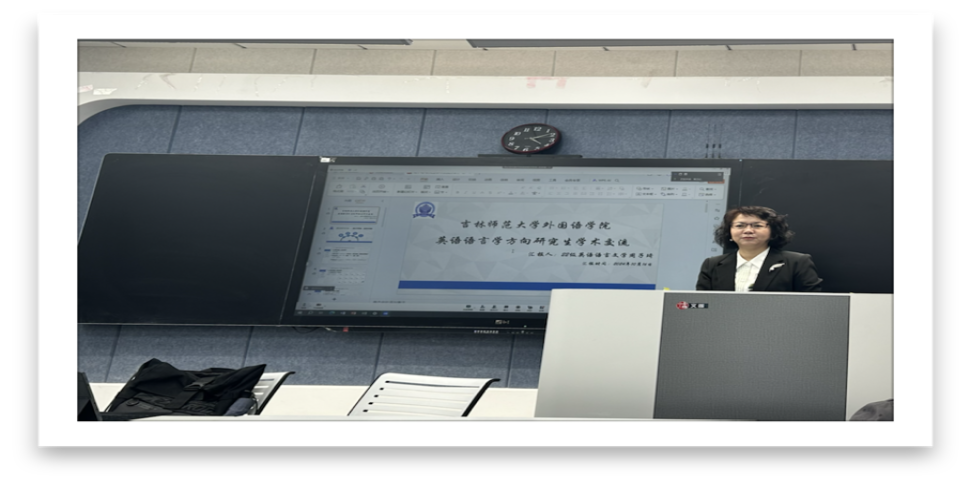 会上,2022级周子琦、王菲、王炫植、谭静和2023级江威炎、张文静、尹美琳、朱彤8位同学分别从语言学和文学方向,就课程学习、文献阅读、研究方向、科研方法、学术交流和学科竞赛以及发表论文等方面进行分享。