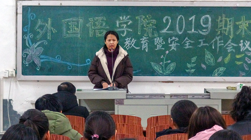 为积极落实学校期末诚信考试和安全工作会议精神,12月25日晚,学院以年级为单位在2311教室召开期末考试诚信教育暨寒假安全工作会议。党委副书记韩强,教学负责人、英语系主任李艳红出席会议。2017级、2018级、2019级全体同学参加会议。会议由韩强主持。