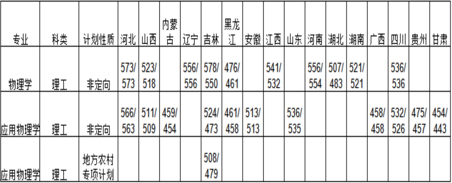 吉林太阳成集团tyc122cc入口物理学院2020年各专业录取分数统计表