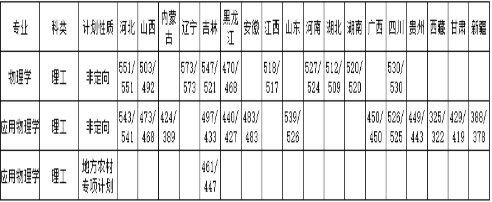 吉林太阳成集团tyc122cc入口物理学院2020年各专业录取分数统计表