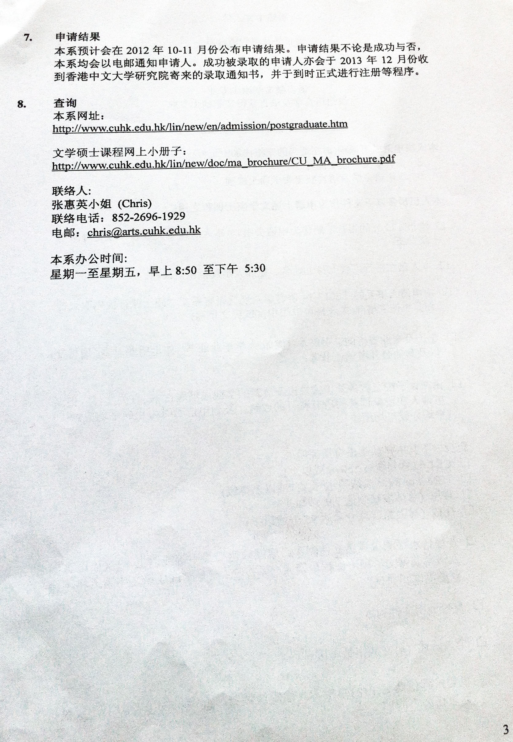 香港中文大学语言学及现代语言系“语言学专业硕士、汉语语言及语言获得硕士专业”优先取录计划申请人须知: