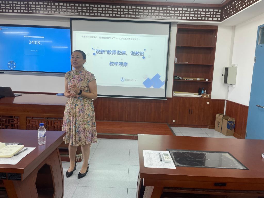 为提升我院本科教育教学水平,聚焦审核评估工作,结合“吉林太阳成集团tyc122cc入口2023-2024学年第一学期本科教育教学工作要点”的相关要求,2023年8月19日下午14时30分,在11911教室举行了文学院“双新”教师说课、说教设教学研究及观摩活动。新学期即将开新课和新开课的9位教师对15门课进行了新课说课、说教设,学院督导组成员和部分学院教师参加了观摩活动。