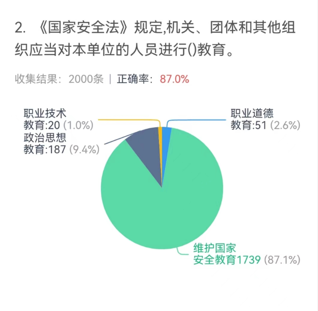 学校始终高度重视国家安全教育工作,牢牢抓住“全民国家安全教育日”这一教育契机,通过举办网上知识竞赛的形式,宣传国家安全知识,我校学生积极响应号召,共计6035个学生参与到知识竞赛中。