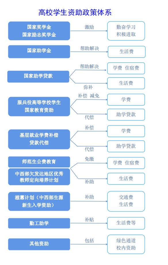 资助家庭经济困难的全日制本科(包含专升本、第二学士学位学生,不含退役士兵学生)在校生,资助分为三档,第一档4000元/年、第二档3300元/年、第三档2600元/年。同时全日制在校退役士兵学生全部享受国家助学金,资助标准为每生每年3300元。