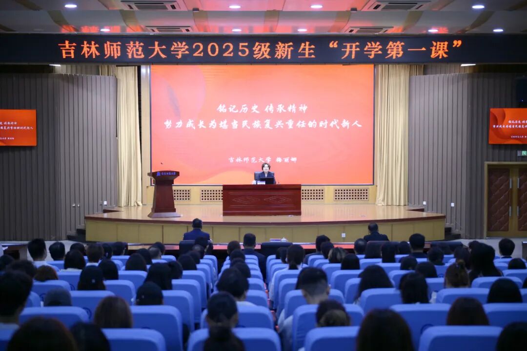 9月28日,党委书记梅丽娜以《铭记历史传承精神 努力成长为堪当民族复兴重任的时代新人》为题,为2025级新生讲授“开学第一课”。学生工作处负责人、各学院党委副书记、辅导员及2025级新生代表现场聆听。