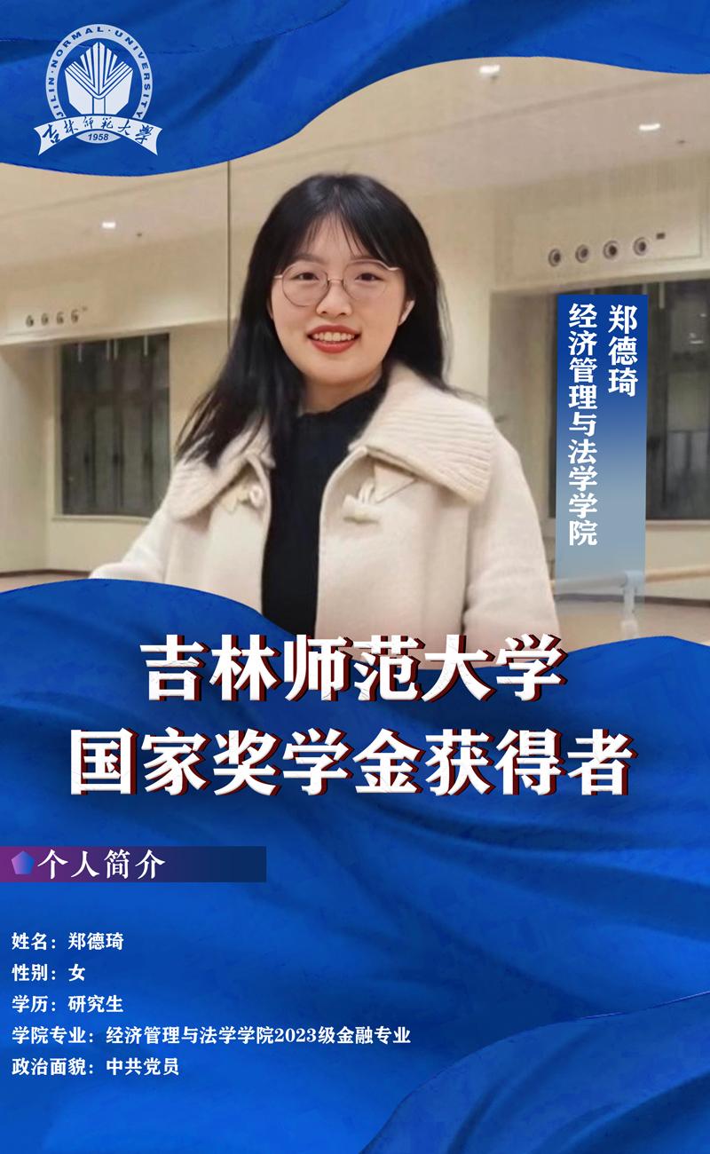 “书山有路勤为径,学海无涯苦作舟。”在学业上,郑德琦同学始终以勤勉为基石,以毅力为动力,始终保持高度的学习热情和严谨的学习态度,不断学习,探索知识。在导师的悉心指导下,她潜心钻研国内外顶尖学术文献与期刊,致力于构建并完善个人知识架构体系。她始终勤奋努力,认真钻研,在校成绩优秀,平均成绩91.53,获得专业一等奖学金,多次在专业比赛获得优异成绩。