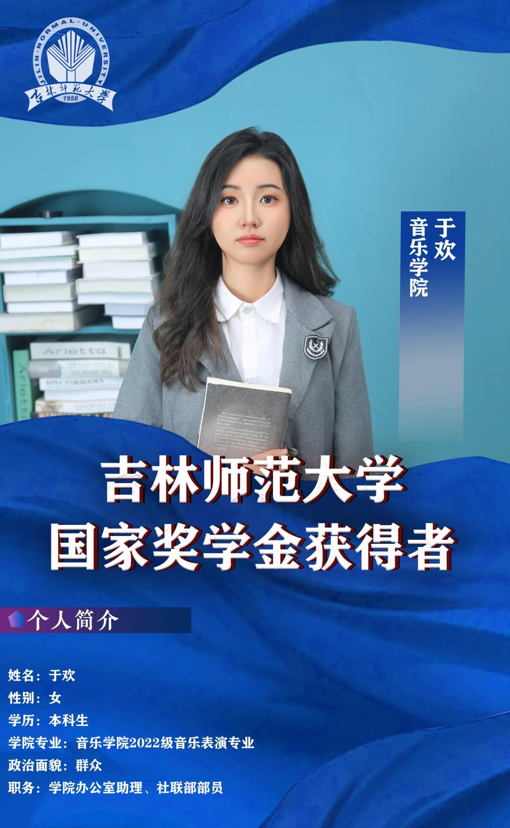 “鸿鸟只思羽翼齐,点翅飞腾千万里。”作为音乐专业的一名学生,于欢希望通过参与比赛、竞赛来不断提升自己的专业实践能力。在省市级音乐赛事及展演活动中屡获殊荣,主持及参与完成4项课题项目。在备赛期间,她经常熬夜整理参赛资料、修改演示文稿、撰写演讲稿,工作至深夜仍坚持练习。她表示:“团队成员都能直面挑战、克服困难,只为在舞台上呈现最佳状态。”